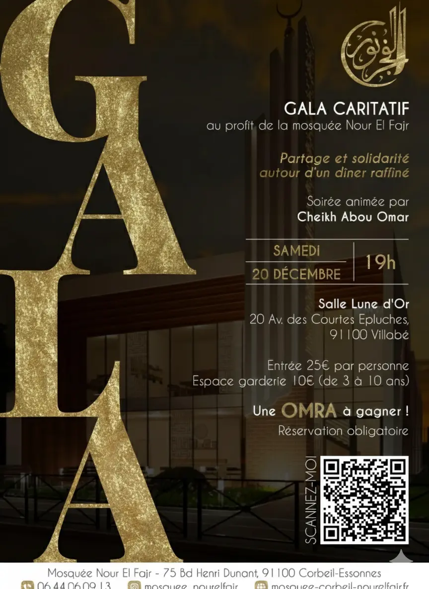 View DetailsUne soirée de partage et de solidarité La mosquée Nour El Fajr a le plaisir de vous convier à son Gala Caritatif, une soirée excepti...